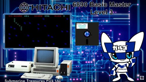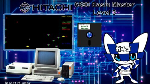 based on the Floatingyeti system; MB 6890/Hitachi Basic Master Level 3 This Japanese computer looks pretty powerful. The main board is located in the main case, below the monitor. Inside this main case there are 6 expansion slots, which is plenty! Therefore, many expansion boards were available (disks, printers, 8088 boards, Z80, etc.). One cool feature is that there's a little hatch in the keyboard that reveals some cool control switches: a power switch, a text mode switch (80/40 columns), a reset button, and a volume control knob. Japan PC with only three games (on MAME SL)